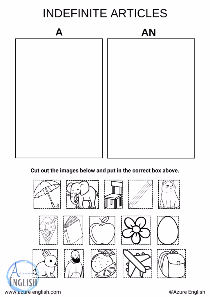 TOP TIP: Point to objects in your classroom and ask students to call out ‘a’ or ‘an’. This can also be done with flashcards. Make sure you have some examples that take ‘an’.