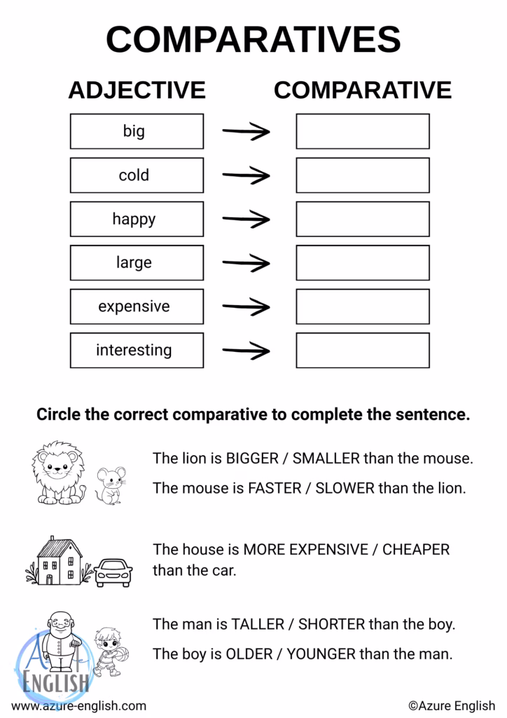 TOP TIP: Ask students to write a few sentences of their own! They can write about whatever they want as long as they use comparatives!