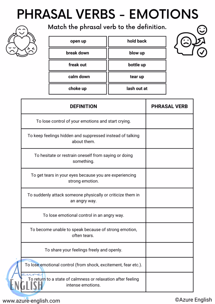 RINTABLE Phrasal Verbs (EMOTIONS) worksheet.