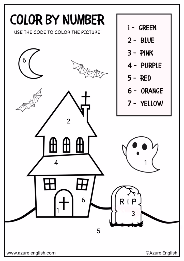 PRINTABLE HALLOWEEN worksheet (color by numbers).