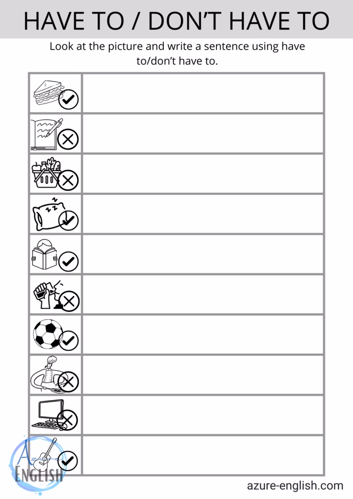 Students are asked to write a sentence using ‘have to’ or ‘don’t have to’