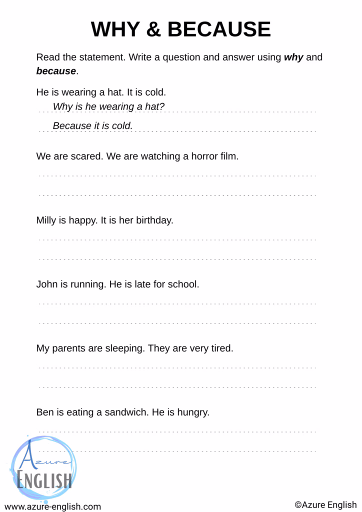This is a worksheet that tests a student’s understanding of the differences between why and because in English.