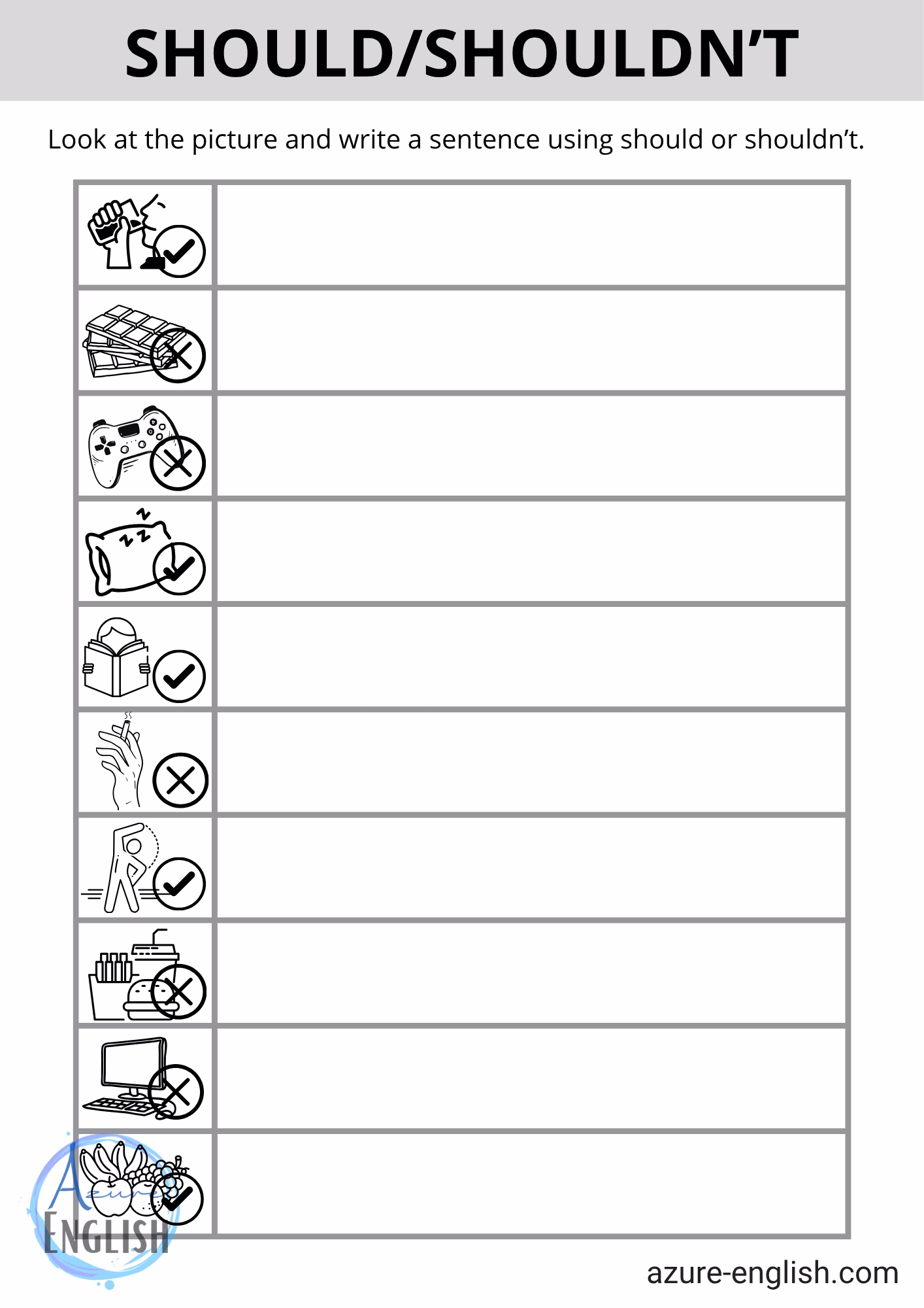 Here you can find worksheets to help you or your students study SHOULD and SHOULDN’T. Suitable for all ages and abilities. If you have any requests, please contact us.