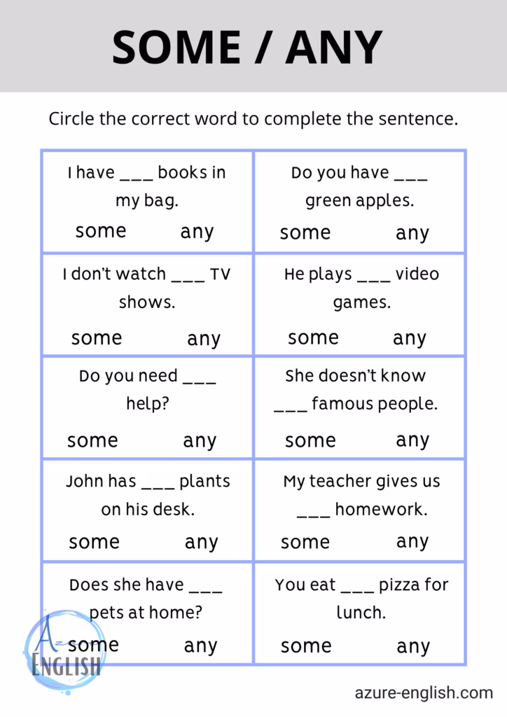 Struggling with the difference between some and any? Our collection of printable and digital worksheets makes learning some and any simple and enjoyable for students of all levels. Whether you’re a teacher looking for classroom resources or a parent supporting at-home learning, you’ll find clear explanations, engaging exercises, and helpful practice activities right here. Let’s get started!