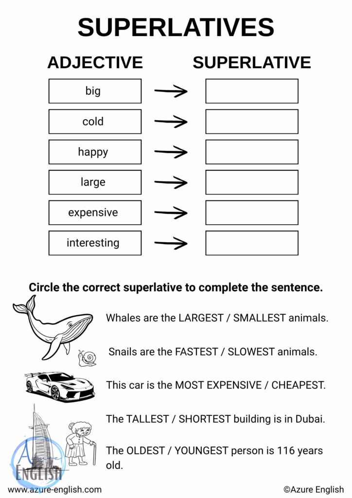 TOP TIP: Ask students to write a few sentences of their own! They can write about whatever they want as long as they use superlatives and/or comparatives!